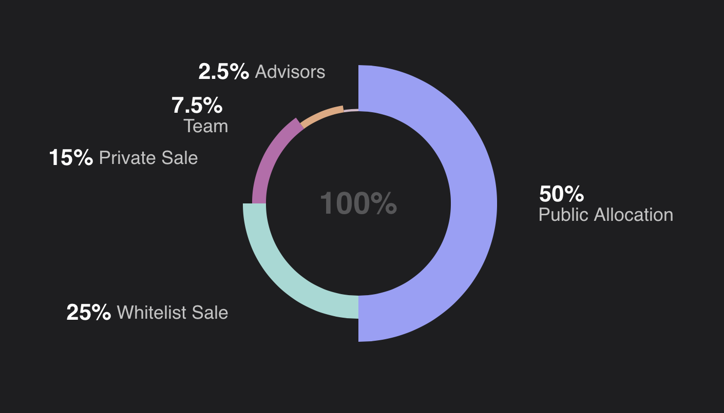 * Public Sale and distribution to active members through airdrops, liquidity mining, rewards for platform activities, and community-led initiatives.
